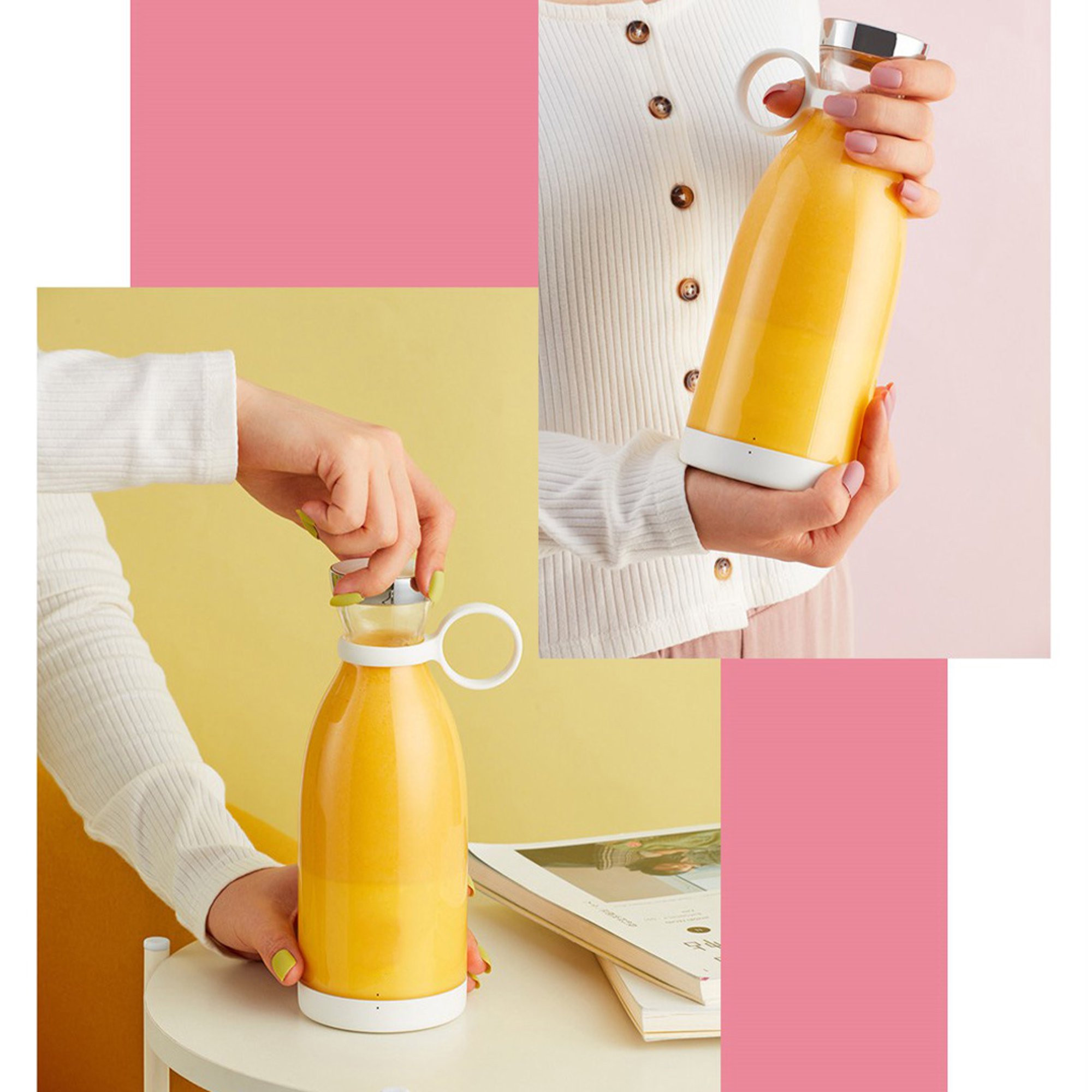 Esta copa de expresi n el ctrica est dise ada con un tama o peque o y ligero por lo que puede colocarlo en la bolsa sin preocuparse por tomar tanto espacio El mezclador de jugos de frutas es adecuado para mezclar Las naranjas uvas peras pl tanos y otras frutas lo que lo ayudan a disfrutar de jugo f cilmente Dise o de 4 cuchillas la taza de licuadora para batidos y batidos tiene una potente base de motor y 4 cuchillas 3D de acero inoxidable de grado alimenticioLa botella es resistente al agua que se puede lavar f cilmente prolongar el tiempo de servicio y garantizar su seguridad al mezclar las frutas